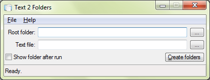 If you find the command prompt part is too difficult for you, then just download this simple utility called Text2Folder. This does the same thing as the command written above, all you need is to browse for the text file and browse the folder location where new folders are to be created and you’re done! One more advantage of using Text2Folder utility is that you don’t have to always copy the text file in root of the folder every time, the utility takes the pain for you. The interface is quite simple as you can see below.